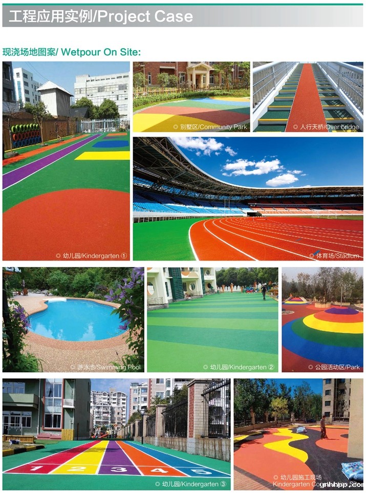 在幼儿园中,EPDM塑胶地面广泛应用于各种活动区域,如操场、游戏区、跑道等。它不仅能够为孩子们提供一个安全、舒适的玩耍环境,还能够丰富幼儿园的景观设计,提升幼儿园的整体形象。